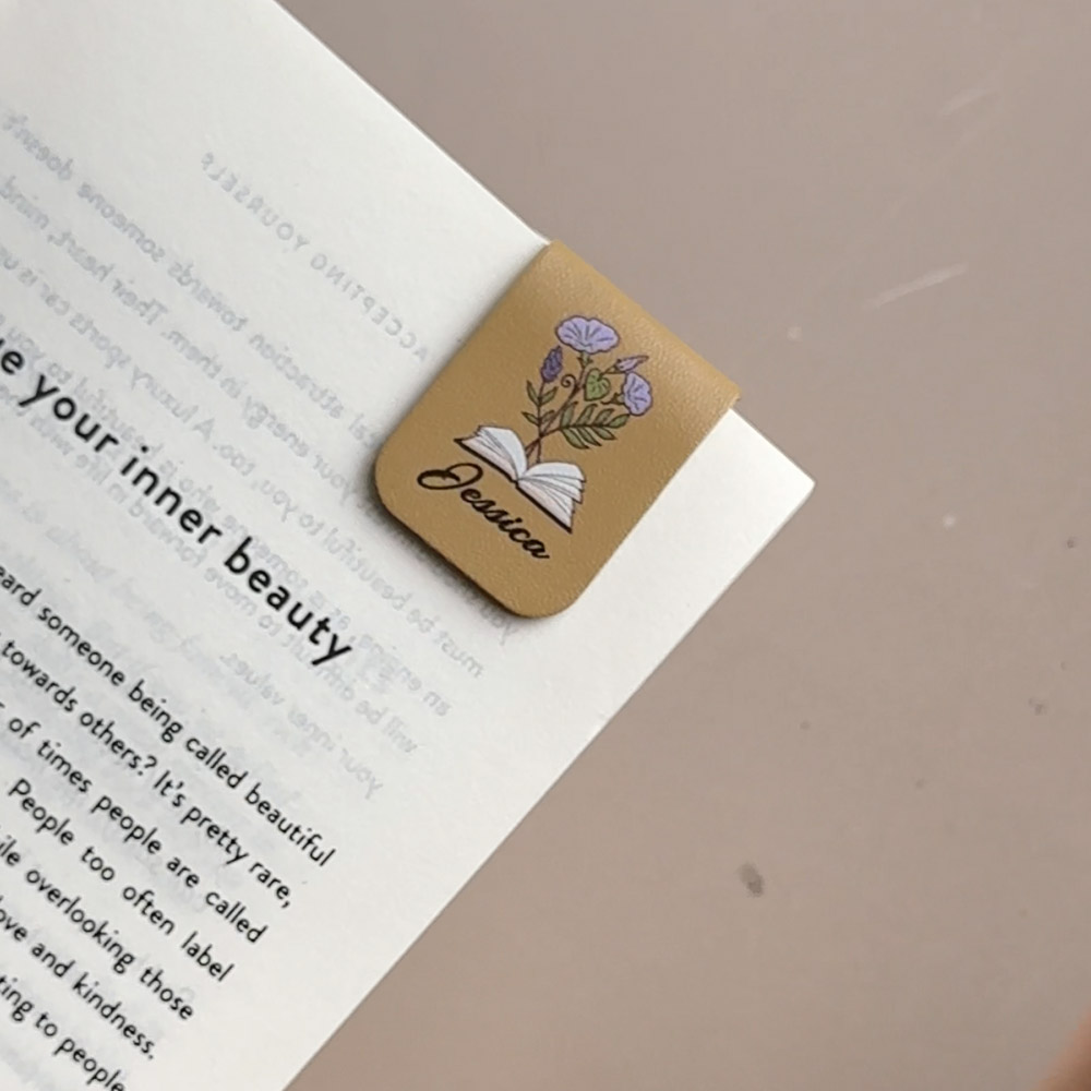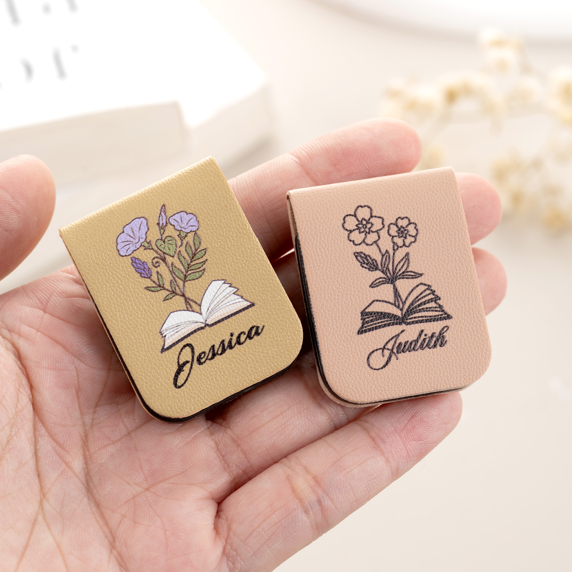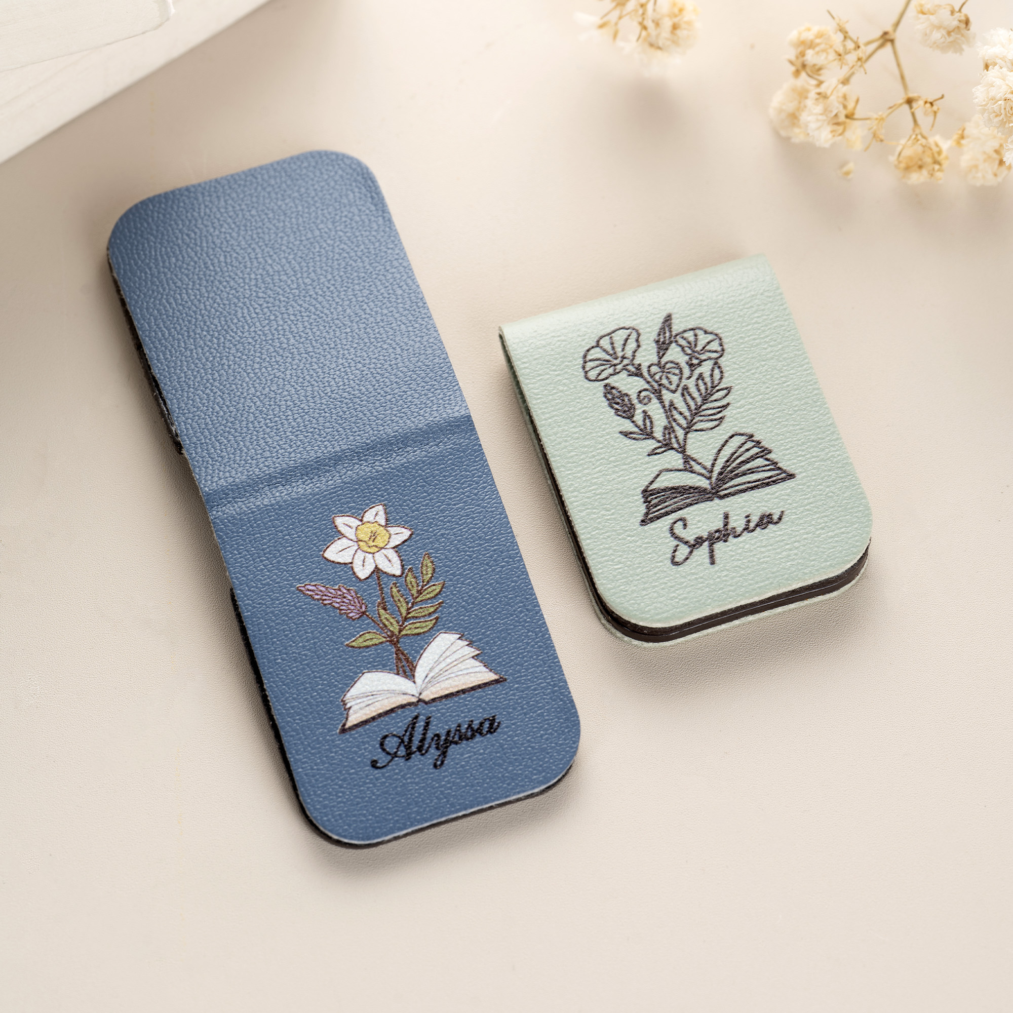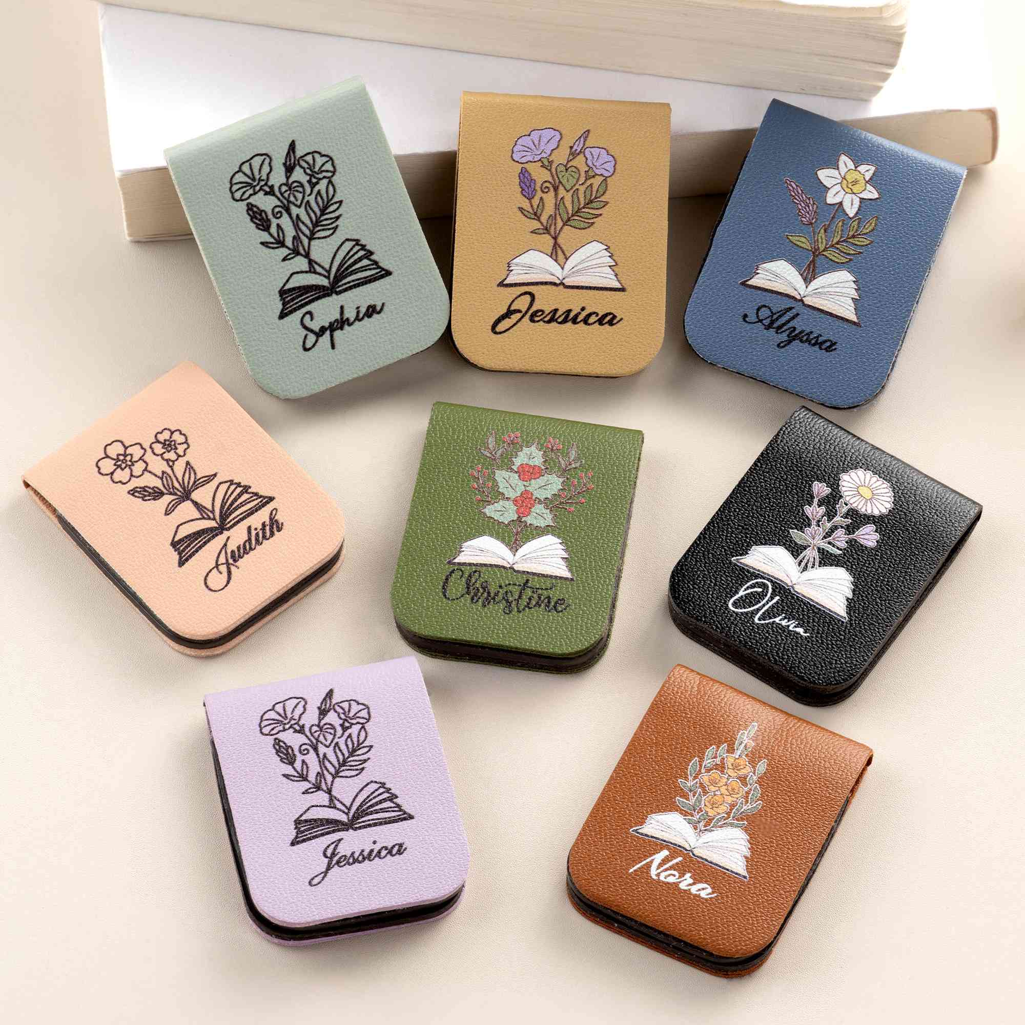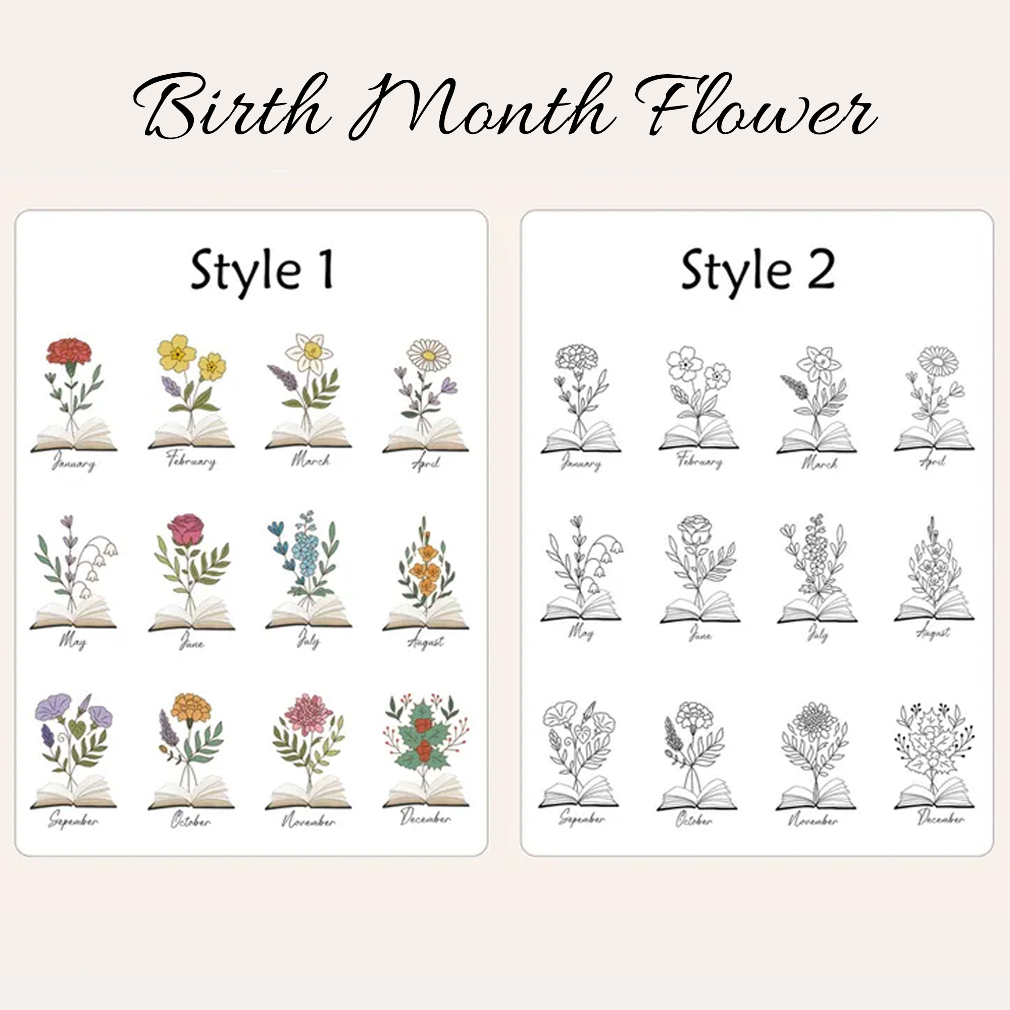 Unique Floral Book Design - Inspired by birth-month flowers blossoming on books, this magnetic bookmark carries a symbolic meaning for each month. It can be customized with any name for a truly personal touch and is available in 12 birth-flower styles, offered in both colorful and black-and-white options.